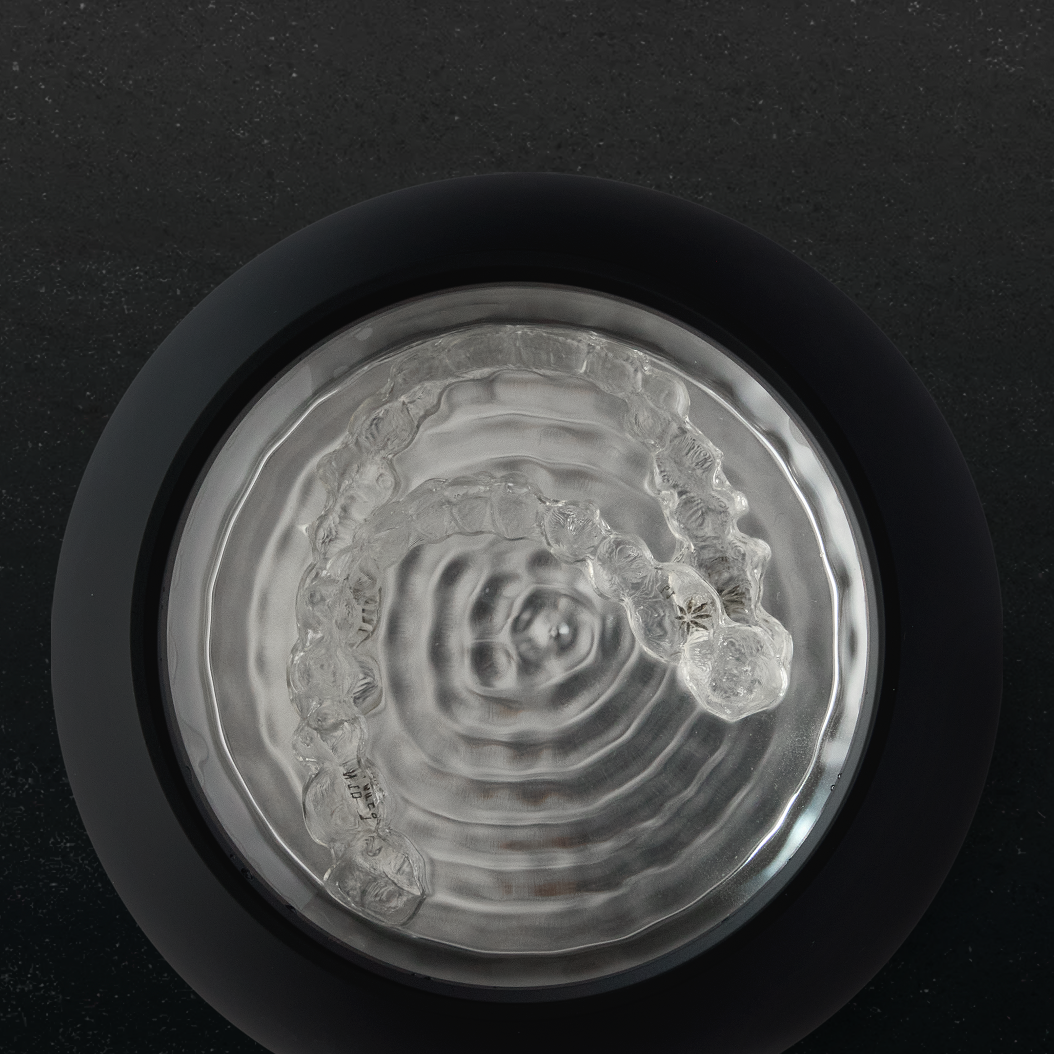 The Dental Pod Pro comes with two cleaning modes that use dynamic 42,000-47,000 Hz ultrasonic waves to vibrate the solution and produce millions of nano-scale bubbles. These bubbles rapidly expand and collapse, releasing a large amount of energy, which smashes the grime, bacteria and plaque on your appliance. This action, called ‘cavitation’ occurs on average 4,000 times per second, allowing the Dental Pod Pro to still deliver a non-abrasive, yet more thorough, cleaning cycle.